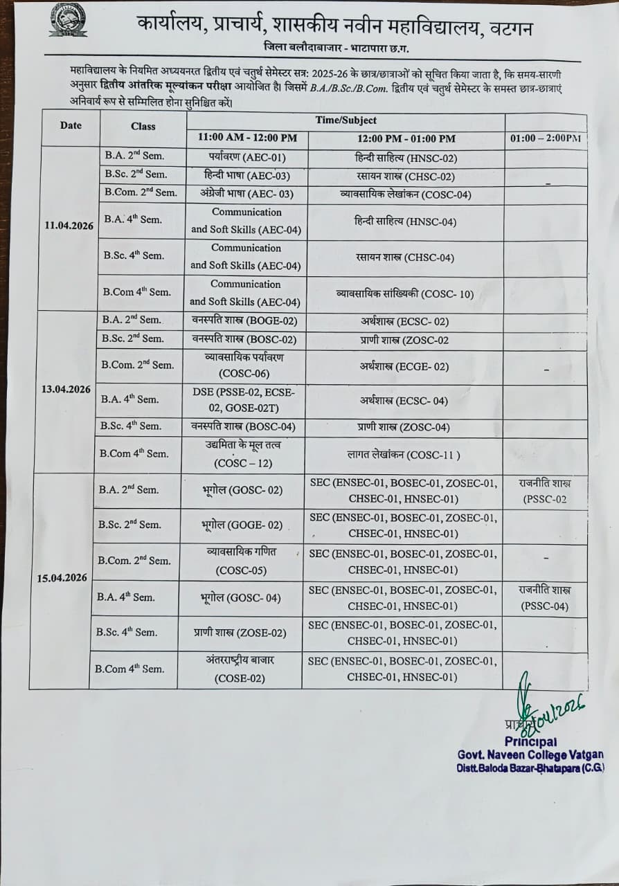 2nd Internal Assessment Examination 2025-26 ( B.A./ B.Sc./ B.Com - II & IV Semester)