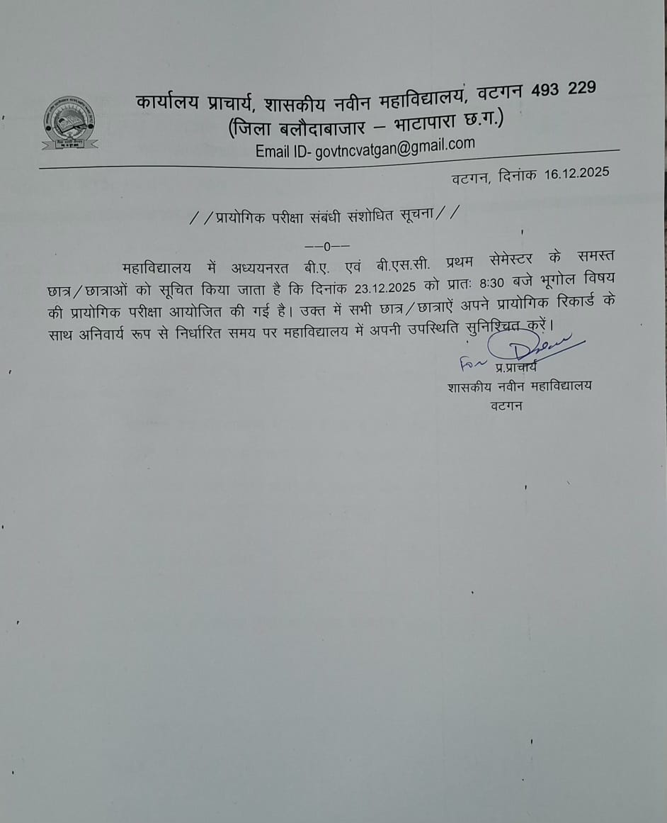 PRACTICAL EXAMINATION - GEOGRAPHY (B.A./B.Sc. First Semester) 2025-26